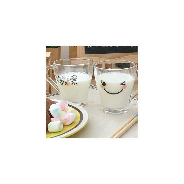 스마일 카푸치노 유리컵 (2p)